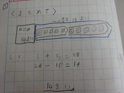 算数では問題文を一度図に表してから考える学習に取り組んでいます。だんだんと図に書くことも慣れてきて、自分の考えをしっかりと図に表せるようになってきました。
