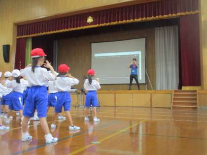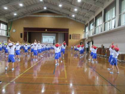 今日は,学年で集まり,色分けをしました。そして「ピーマン体操」を踊りました。どの組も一生懸命練習していました。