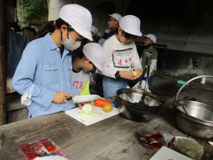2日目の野外炊事のカレー作り。