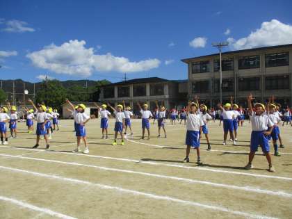 本日は運動会を行いました。良い天気の中、子どもたちは今まで頑張って練習してきたことをすべて出し切って笑顔とマッスルで頑張りました。運動会が終わった後は「めっちゃ楽しかった。」「はじめは緊張して心臓のドキドキが止まらなかった。」「もう1回やりたい!」と言っていて、とても楽しんでいたようでした。子どもたちの頑張りに温かいご声援を送って頂き、ありがとうございました。