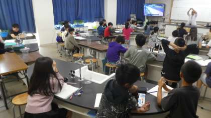 雨の日の岩倉川の様子を記録したビデオを見て、気がついたことを出し合いました。
