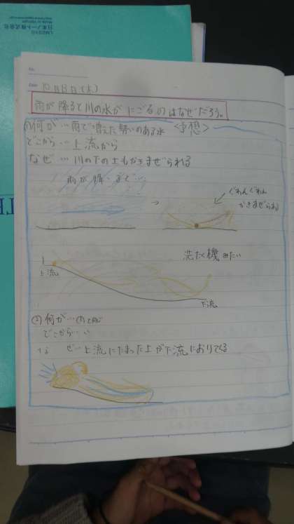 こうしたことをもとにして、雨が降ると、なぜそうなるのかについて話し合いました。