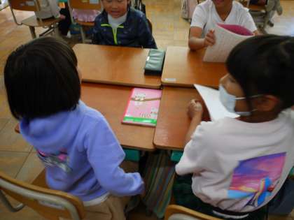 国語科では「そうだんにのってください」という学習に入っています。友達の相談を聞いて、いいアイデアをみんなで考えるという学習です。「夜、眠れない日があるんだけど、どうすればいいですか?」という相談に対して、一生懸命みんなで解決策を考えていました。