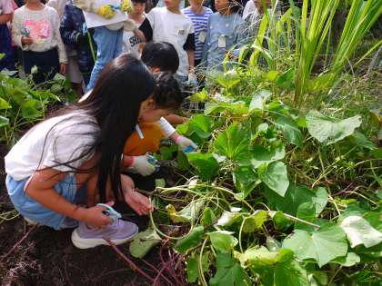 6月ごろに植えたサツマイモをついにほる時期となりました。「どれくらい出来ているんだろう。」とみんなわくわくしながらほりました。サツマイモが見つかると、「あったー!」と歓声が上がりました。クラスによって多少数に違いはありそうですが、お芋パーティーが出来そうです。