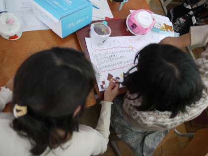 1年生を招待する「みなみっこフェスティバル」に向けてお店作りを始めています。看板を作ったり、ルールを考えたりして楽しんでもらえるように協力しています。11月が本番なので力を合わせて成功させたいですね。