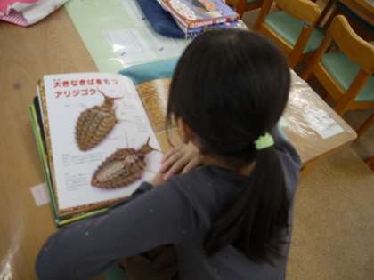 週に1時間の読書の時間には本を借りた後、自由に読書をする時間があります。友達と大型絵本を楽しんだり、好きな本をじっくり読んだりと思い思いに過ごしています。