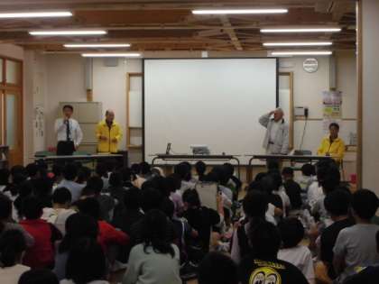 総合的な学習の時間に防災について調べています。今日は、自主防災会の方々に来ていただいて地域の防災についてお話しを聞きました。自然災害が起きた時には、まずは自分の命を守ること、そのために災害に備えたり避難の準備をしたりすることが大切だと教えていただきました。子どもたちは「避難する時に一番必要な物は何ですか?」「岩倉に災害が起こるとしたら、どんな災害ですか。」など、お話を聞いて疑問に思っていることをたくさん質問し、自分たちの身や命を守るためにはどうしたらいいのかに真剣に考えていました。