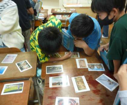 アートカードを使った2回目の学習では、アートカードを使ったゲーム活動を行いました。ゲームを通じて作品をじっくり見たり、作品について友達と話したりしていました。作品に対しての感じ方や視点は人によって様々で面白いということに気付いたようです。
