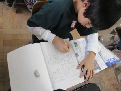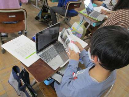 社会科では、昔から京都府で続くお祭りについての学習をしています。子どもたちはお祭りを1つ選び、調べ学習をしています。「見たことはある」「何のために行われているのか、知らなかった」など、言いながら調べていました。