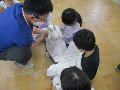 生活科「いきものとなかよし」の単元で,獣医さんにきていただき,学校で飼っているうさぎについていろいろ教えてもらいました。