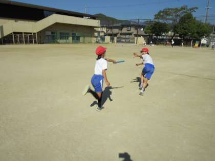 一度リレーをしてみて、そのあとグループで練習をして、もう一度リレーをしました。