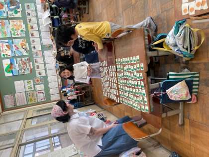 今日はALTのアリス先生と一緒に外国語の学習を行いました。自分が作りたいサラダに必要な野菜をゲットするために、お店やさんとお客さんに分かれてお買い物♪「How many〜?」や「〜please」という表現を使いながら楽しくやりとりすることができました。ゲットした野菜で「みんなが笑顔元気サラダ」や「オクラ好き大歓迎!オクラたっぷりサラダ」「元気いっぱいカラフルサラダ」などオリジナルサラダを作ることができました。次回は、作ったサラダを紹介し合います。