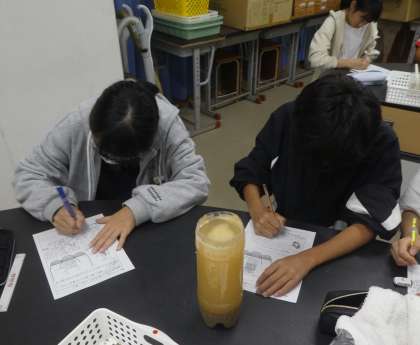 このことを確かめるためペットボトルとどろ・砂・れきをつめたコップでモデル実験を行いました。