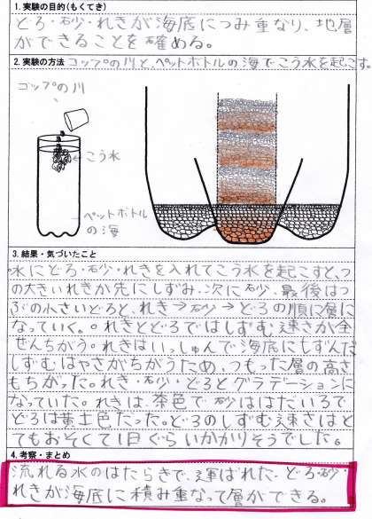 なぜしまもようの地層ができるのかを実験で確かめました。