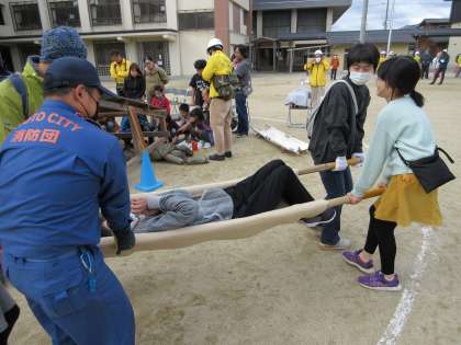 負傷者を助ける方法もいろいろ教わりました。
