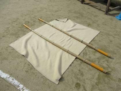 倒壊した家屋などに挟まれた人を助けるためにジャッキと呼ばれるアイテムを使いました。小さな力でも大きな家屋を持ち上げられることが分かりました。また、助け出した人は担架で運びます。担架は家にあるもので簡単に作ることができることも学びました。
