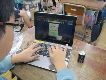 豆電球を点灯させるにはどのようにつなぐとよいか予想しました。