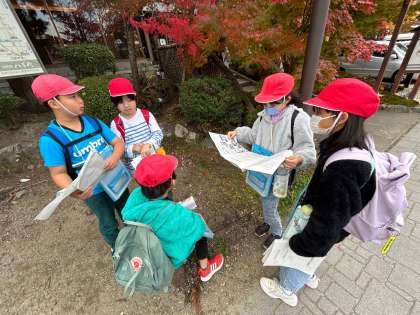 子どもたちは、班でルートを決めて見学しました。地図と時計を観ながら散策をしました。宿泊学習での反省を生かして、協力して活動していました。