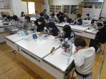 顕微鏡を使い、火山灰の観察をしました。