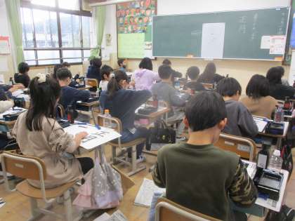 今日は毛筆で「正月」という文字を書きました。今までに学習した横画やたて画、はらい、はねを意識してていねいにかきました。