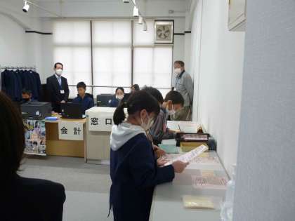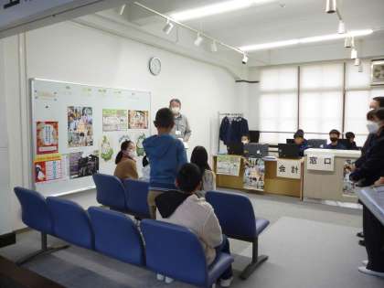 市役所では、上京市役所の職員と市民にわかれて住民票の発行の体験をしました。