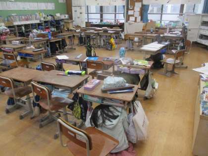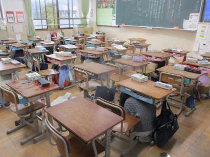 今日の中間休みは、シェイクアウト訓練が行われました。地震を想定して、報知音が鳴った際に、物が落ちてこない、倒れてこない、移動してこない場所へ速やかに避難し、姿勢を低くして頭を守ることができるように訓練を行いました。中間休みで運動場へ遊びに行っていた子もいましたが、放送の指示に従って、落ち着いて安全に行動することができていました。