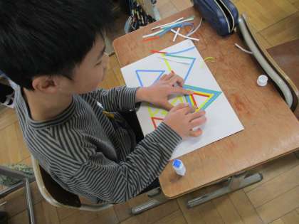 三角形を組み合わせて,模様のように仕上げた子もいました。