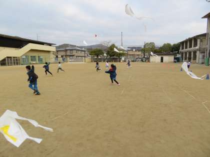 みんな上手にあげることができ、可愛らしい絵が空に浮かびました。