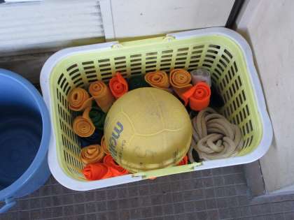 今日は学級のボール・しっぽ取り用のしっぽカゴの中です。