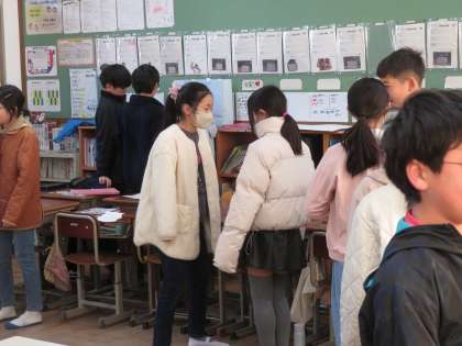 外国語の学習で、自分の一番の思い出について聞き合いました。英語を使って頑張って話していました。