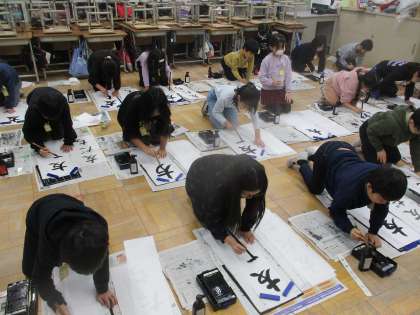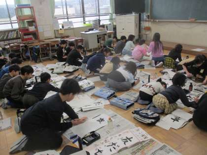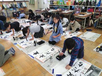 新年を迎え、今年初めて筆を持ち、「友だち」の三文字を書きました。練習プリントで練習をした後に、一文字ずつ丁寧に書きました。3年生にとって、初めての画仙紙を使っての書き初めということで、慣れないところもありましたが、みんな気持ちのこもったすてきな字を書いていました。