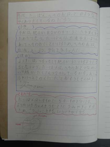 それぞれについて、そのはたらきを調べ、意見交換をしました。