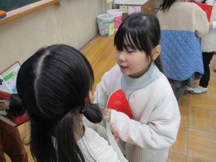 国語科の時間に「たのしいな、ことばあそび」の学習をしました。一字増やして、言葉を別の言葉を変身させる学習です。いろいろな言葉を変身させるクイズを作り、みんなで出し合いました。悩みながらも楽しそうにクイズに答えていました。