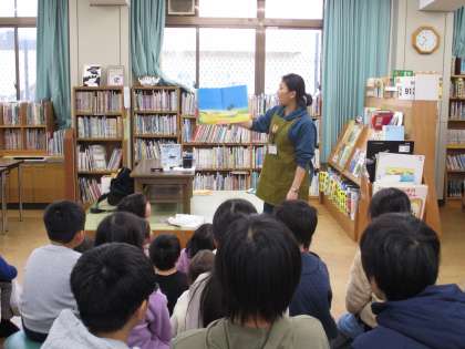 子どもたちは食い入るように本を見ながらよみきかせを聞いていました。