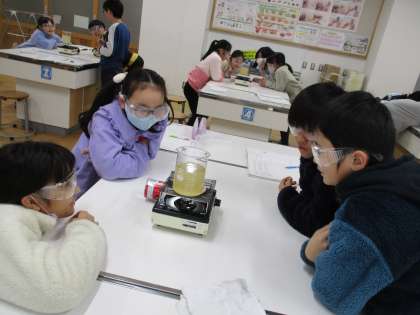 理科「もののあたたまり方」の学習では、水のあたたまりかたの実験をしました。子どもたちは「金属と同じだろう」「熱した部分から順に温まるだろう」と予想をしていました。しかし、実験の結果は違い、大変驚いていました。「だからお風呂かき混ぜや〜って言われるんか!」と納得している子もいました。
