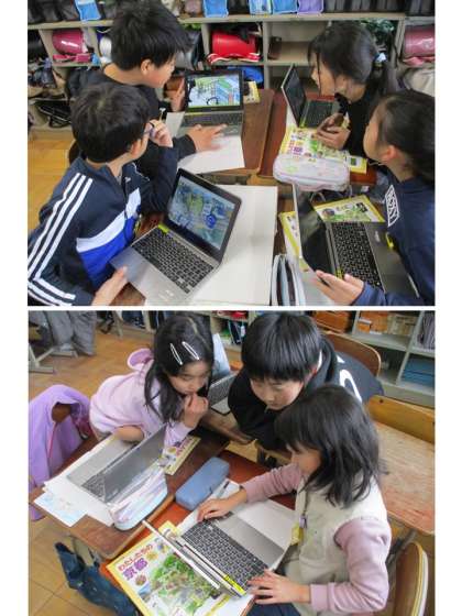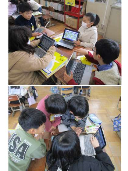 まちの様子をあらわしたイラストを見ながら,どのような場所で事件や事故が起こりそうか考え,交流しました。