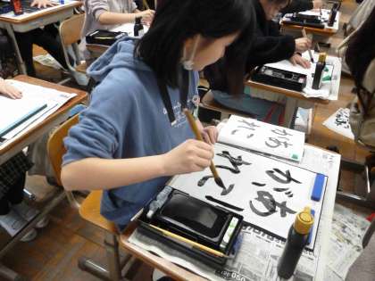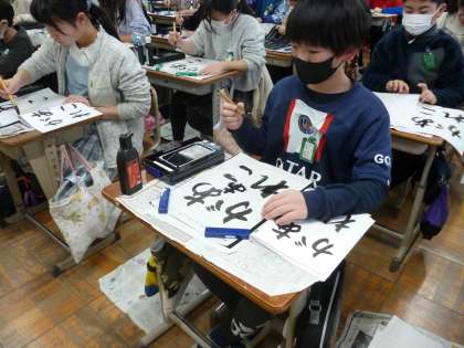 今回は「あこがれ」という言葉を書きました。文字の大きさ、とめ、はらいにも気を付けながら丁寧に仕上げていました。
