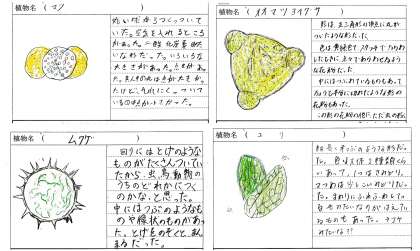 顕微鏡を使って、4種類の花粉の名前を調べました。