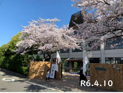 昨日までの雨模様から一転、晴天に恵まれ、校門の桜も満開で新学期がスタートしました。