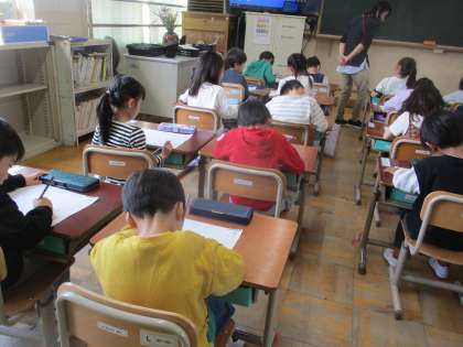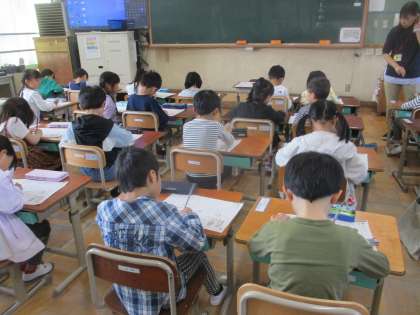 今日からいよいよ「ひらがな」の学習が始まりました。鉛筆の持ち方に気を付けて、良い姿勢を意識して「く」の字を書きました。本日から宿題のひらがなプリントも始まっています。途中のおれや最後のとめができているかを中心に見ていただきたいです。