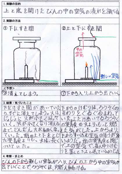 常に新しい空気が入ってくるので、ろうそくが燃え続けることが分かりました。