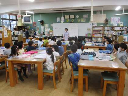 今日は初めて学校図書館へ行きました。学校司書の先生に図書館での過ごし方や本の貸出・返却の仕方について教わりました。今日は1冊だけ借りたい本を選んで、借りました。