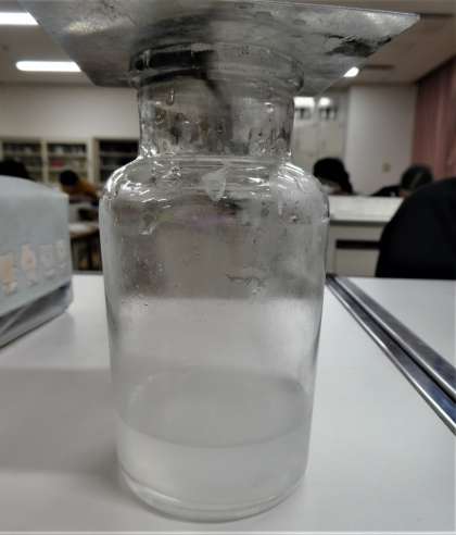 ろうそくを燃やした後の空気について、石灰水で調べました。