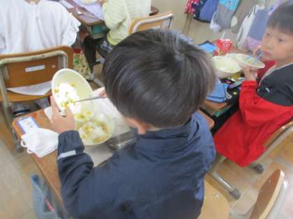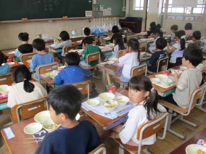 今日の給食はこどもの日の行事献立で新献立のカラフルライスの具がでました。こどもの日は端午の節句とも言い、柏餅や粽を食べたり、こいのぼりを飾ったりして、子どもたちの健康や幸せを願い、お祝いする日です。子どもたちは「美味しい」「ごはんが進む」と言いながら楽しんで食べていました。