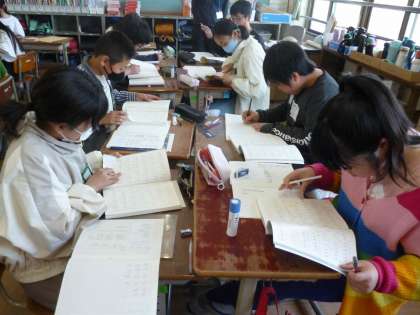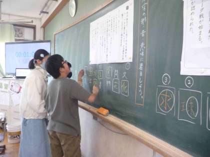 国語で漢字についてくわしく調べる学習をしました。漢字の形・音・意味に着目することで新たに気付いたことがあったようです。班で協力して、漢字集めもしました。