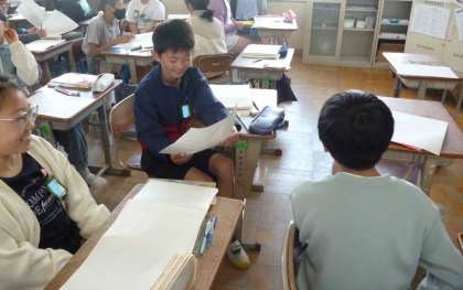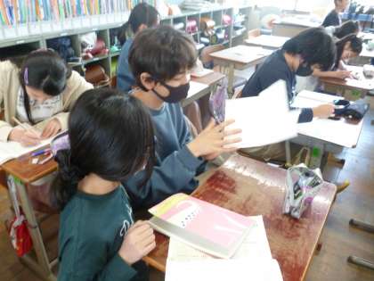 国語科の学習で、教職員の方々に「岩倉南小学校のよいところ」をインタビューしにいきます。来週から、いよいよインタビュー!友達同士で練習をしたり、メモを確認し合ったりしながら本番に備えていました。