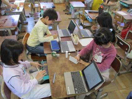 自分たちで何をするか,何を作るか考え,同じ係のお友だちと力を合わせて活動しています。