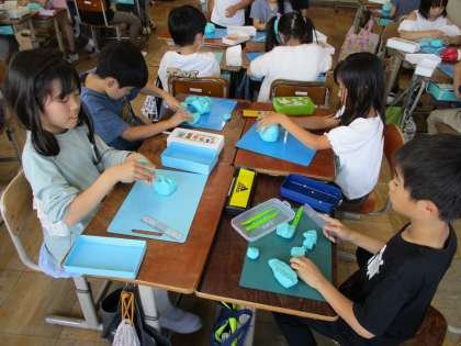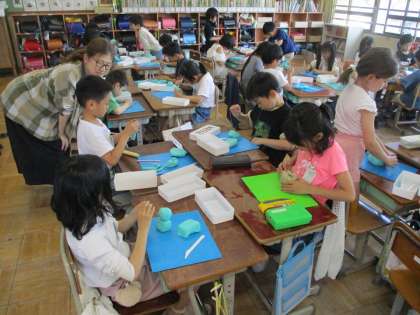 手でこねたり,ひねったり,へらを使って切ったり,糸を使って模様をつけたり,それぞれのアイデアで,活動をめいっぱい楽しむことができました。