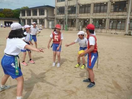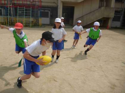 2・4組合同でタグラグビーの学習を行いました。他クラスと試合をする機会が少ないので、今回は楽しみながら活動できる時間になったようです。また、機会があれば他のクラスとも対戦していけたらと思っています。