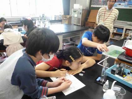 実験をしっかりと観察していました。実験結果に対して「すごい!」や「なんで!?」など楽しそうな声が聞こえてきていました。